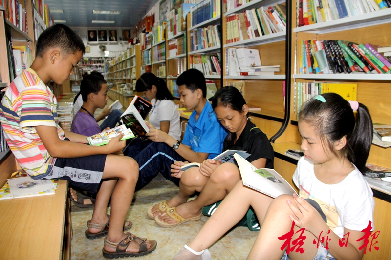 7月16日,在藤縣太平鎮(zhèn)一家書店里,幾名學(xué)生正在認(rèn)真看書。