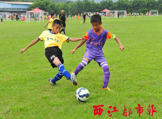 在U11校園組比賽中,雙方隊員在積極拼搶。西江都市報記者 陳健新/攝