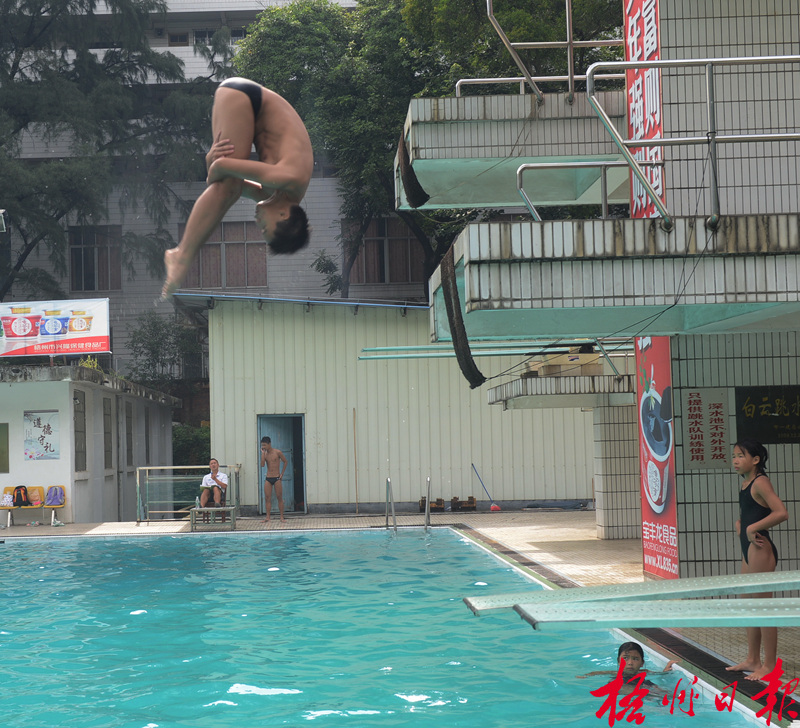 7月23日,在市跳水游泳射擊訓練館,選手們正在進行跳水訓練。