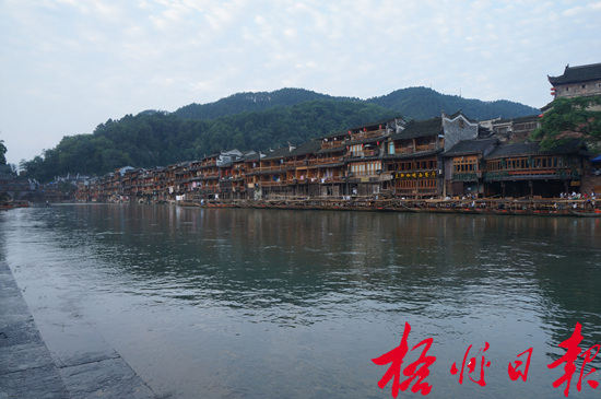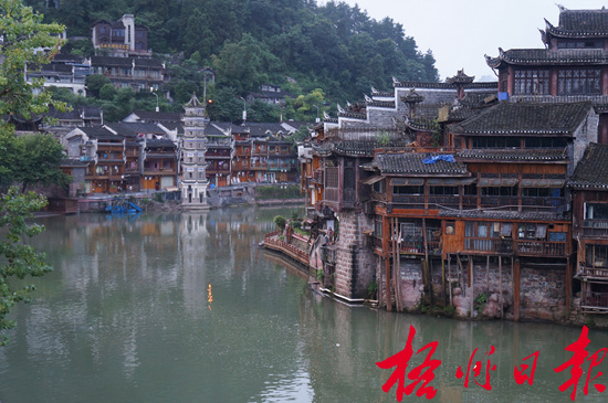 ??? 7月23日晚,在綿綿細(xì)雨中,我們來到了古鎮(zhèn)鳳凰。此處的小鎮(zhèn),不像大理古城那般靜謐,而是熙熙攘攘,十分熱鬧。