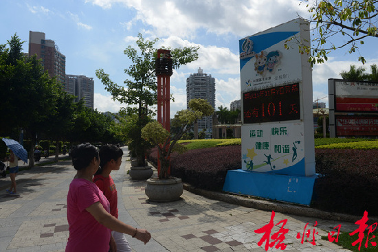 ????7月29日,樹立在市政廣場旁的區運會倒計時牌非常醒目,每日遞減的數字提醒人們區運會的腳步越來越近。在市政廣場內,市民或在陽光下、或在樹蔭里開展健身舞、太極柔力球等健身運動。