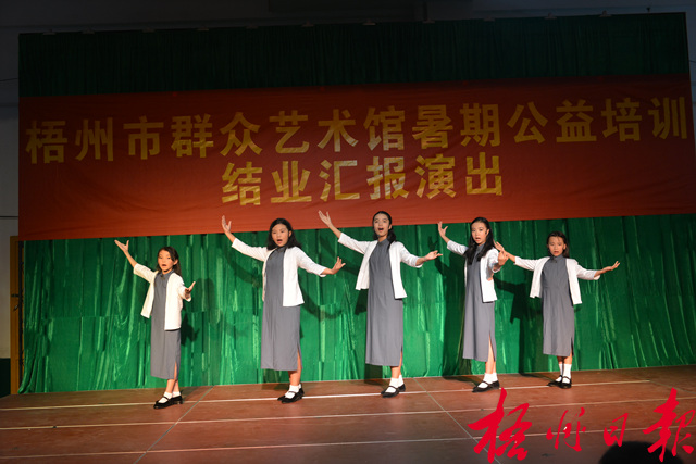 ????用熱情播撒希望種子,用夢想編織七彩童年。7月24日晚,在梧州市群眾藝術(shù)館的小舞臺上,歡聲笑語熱鬧一片,一臺展現(xiàn)我市青少年積極健康面貌,傳播傳統(tǒng)文化的演出在此拉開帷幕。經(jīng)過半個多月的學(xué)習(xí)培訓(xùn),參加市群藝館舉辦的2015年“傳承優(yōu)秀文化 弘揚(yáng)社會主義核心價值觀”暑期公益培訓(xùn)活動的學(xué)員們拿出各家所長,舉辦匯報演出,為眾多家長與觀眾送上多個精彩的節(jié)目,自信展示自己的學(xué)習(xí)成果。