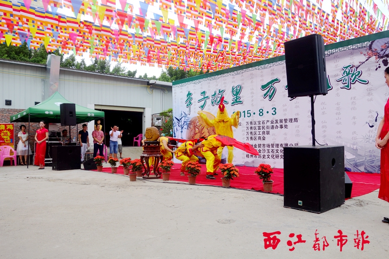 ????本次活動由萬秀區寶石產業發展管理局、萬秀區富民街道辦事處、萬秀區工商聯、萬秀區商會聯合主辦?;顒涌偛邉澣藦埩柚菊f,此次推介展示的歌舞都保持了原生態的文化形態,表演者都是地道的農民,為觀眾帶來了山歌、九山調、水上民歌等特色民俗歌舞。
