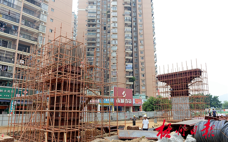 ??? 8月5日,在日化路,工人正建造西江四橋引橋橋墩。