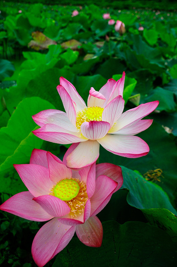 ????夜已深,我沿原路慢慢折回。回來的路上,我默念宋代文學家周敦頤的《愛蓮說》,當念到“予獨愛蓮之出淤泥而不染,濯清漣而不妖,中通外直,不蔓不枝,香遠益清,亭亭凈植,可遠觀而不可褻玩焉。”忽有感悟:我觀賞荷花,荷花何嘗不也在觀察我?微風中,荷花連連頷首,仿佛與我心靈相通。回到家,妻兒已熟睡了。當晚,我奇跡般告別了困擾已久的失眠,酣夢里盡是荷花,微風中一大片一大片的荷花競相開放,讓人心曠神怡。(何其武)