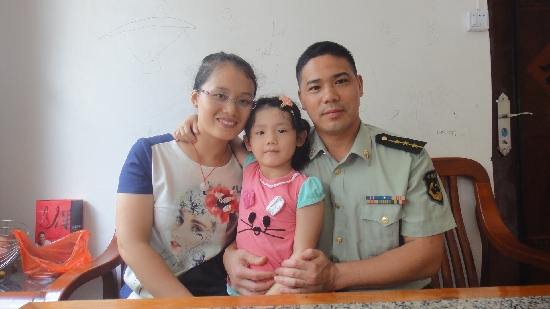 她叫黎莉,是武警廣西總隊梧州市支隊政治處宣傳股股長李卓繁的妻子,一名普通的軍嫂。