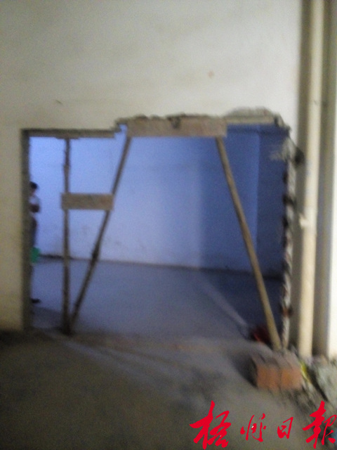 ????近日,龍圩區(qū)港景居的業(yè)主向本報反映,三年前小區(qū)開發(fā)商將單元的出口通道封住,把通道間隔成一間商鋪,只在通道側(cè)墻留下大概90厘米寬的門口讓居民出入,前段時間開發(fā)商又將門口封閉起來,在旁邊再次開鑿一個門口,業(yè)主就要求將門口由90厘米寬擴(kuò)大到2米,但開發(fā)商不愿意,門口還沒有建設(shè)修整完工就索性不再繼續(xù)施工了,只用木桿、木板撐著鑿開的墻體,存在很大的安全隱患。居民表示,開發(fā)商沒有征詢業(yè)主意見就將通道門口改來改去,已經(jīng)很不合理了,現(xiàn)在還留下沒完工的門口,根本不為居民考慮,他們希望相關(guān)部門能夠管理一下,將問題盡快解決,還居民一個安全的居住環(huán)境。