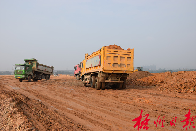 ????8月6日,在蒼海項目半島核心區,施工車輛正運輸土方。