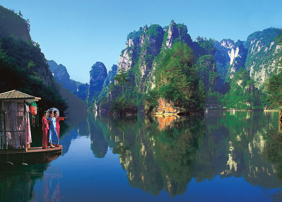 ????寶峰湖享有“人間瑤池”美譽,寶峰湖是一個自然湖泊,匯山澗溪水、林野甘露而成,故湖水碧翠,幽深見底,如一面掛在80余米高的山頂上的寶鏡。