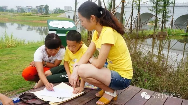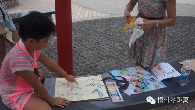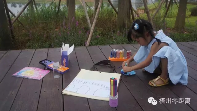 ????8歲的李依恬選擇了把寶石園的風光畫下來,她說寶石園里寶石形狀的裝飾物很漂亮,而且梧州是人工寶石之都,寶石最能代表梧州。李依恬已經跟隨父母到廣州讀書,這次是趁著暑假回來梧州的機會報名參加比賽,李依恬媽媽說:“平時因為工作的關系很少有機會能夠陪伴孩子一起參加戶外寫生的活動,這次比賽到園博園來畫畫,不僅是孩子認識梧州的一次好機會,也會是親子間一次難忘的活動體驗。” 李依恬不時和媽媽討論畫面的構圖,媽媽也在旁指導她顏色的選擇,氣氛和樂融融。