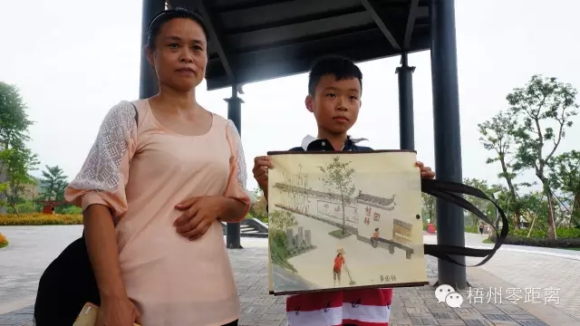 ????10歲的黃俊銘看到的園博園跟別的孩子不太一樣,一個在園林里打掃的清潔阿姨成為了他畫中的主角。黃俊銘小朋友有點害羞地告訴記者說,他喜歡桂林園雅致清幽的環境,本來想在此取景作畫,剛打好草稿,一個環衛阿姨就走進了他的視野,阿姨在悶熱的天氣下彎著腰掃地,汗大滴大滴地流下來只能擦到衣袖上,這一幕讓小俊銘感受到了環衛阿姨工作的辛苦,園博園的美麗環境離不開像這位阿姨一樣的工人的辛勤勞動,于是他決定把環衛阿姨的身影捕捉到自己的畫面里。????
