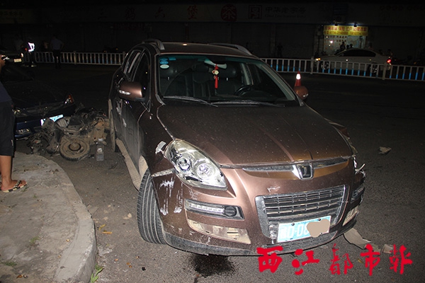 ????8月12日晚上22時(shí)許,西堤一路廣西梧州茶廠對出路段發(fā)生一起交通事故。萬秀交警大隊(duì)民警到現(xiàn)場后發(fā)現(xiàn),肇事車輛為一輛桂D牌號的納智捷牌越野車,駕駛?cè)艘巡辉诂F(xiàn)場。事故路段中心約30米的隔護(hù)欄被撞壞,造成包括肇事越野車在內(nèi)的四臺車輛損壞,其中一臺為助力車,助力車駕駛?cè)耸軅?/p>