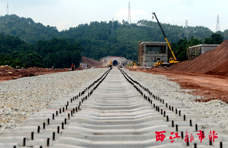 ?梧州港赤水圩作業區碼頭進港鐵路全長接近5公里,銜接赤水港臨港作業區和益湛鐵路孔梁站北端,建成后將起到水陸聯運的交通運輸動脈作用。目前,該項目已轉入線上施工,計劃明年一季度通車。 西江都市報記者 蒙紹松/攝
