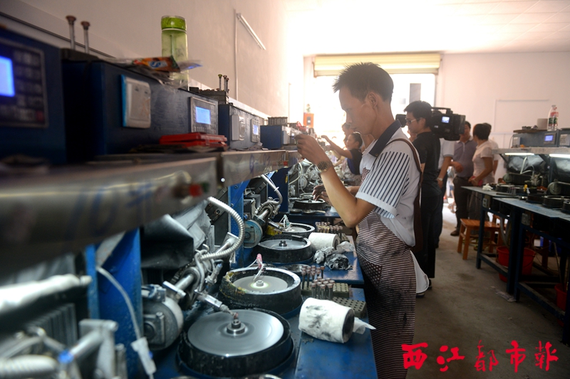 ??? 8月19日,在蓮花山寶石加工集中區的崇錦寶石加工區,工人們在操作加工機械進行人工寶石的生產。目前,依托蓮花山寶石加工集中區的有利條件,梧州市的人工寶石加工業發展勢頭良好,集中區的生產環境及各項配套設施日益完善,讓寶石加工從業人員工作生活感到舒適便利。 西江都市報記者 蒙紹松/攝