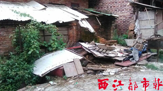 ????記者還發現,夏郢鎮不少居民習慣在房前屋后存放大量廢舊物品。在夏郢街南段32號旁的巷子里,堆積著體積龐大的廢棄木柜、竹制品和殘舊的帳篷布。在夏郢街東段51號斜對面,也放著三堆廢舊物,分別裝著廢棄瓶子的蛇皮袋以及戶外廣告牌等。還有夏郢街西段2號對面,一塊比較大的樹根用廢舊的帳篷布橫七豎八地隨便遮蓋,遠看就像一堆巨型垃圾,附近一條十多米長的樓梯還放置著不少木條、磚塊、木屑等建筑垃圾,顯然這里已經成為一個衛生死角。 |