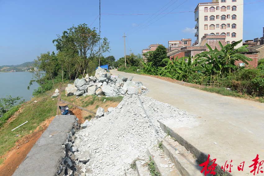 ????結合生態鄉村建設、打造生態特色旅游島,泗州村啟動實施環島公路拓寬改造工程。目前,村公交車站至青山廟(約1100米)的一期工程已基本完成路基拓寬,部分路段正在修建擋墻和護坡。