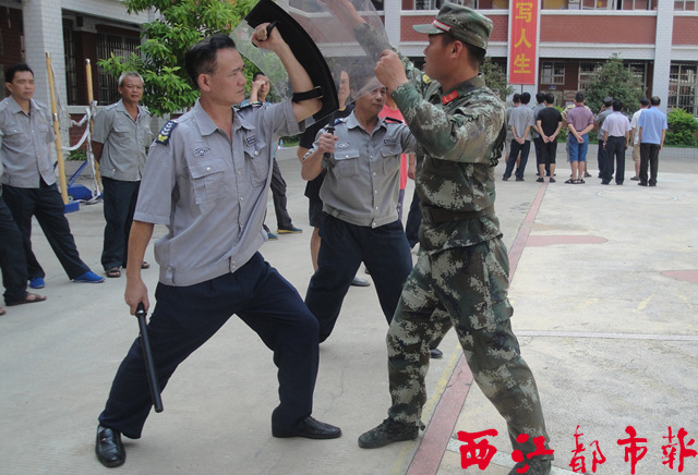 ????西江都市報訊(記者 萬立平 通訊員 鄧表勇 李求知)怎樣才能做一個合格的校園安保人員,以維護校園安全?8月24日,2015年梧州市直管學校安保人員培訓班開班,保安服務公司的專業人員手把手地向校園安保人員傳授相關技能。