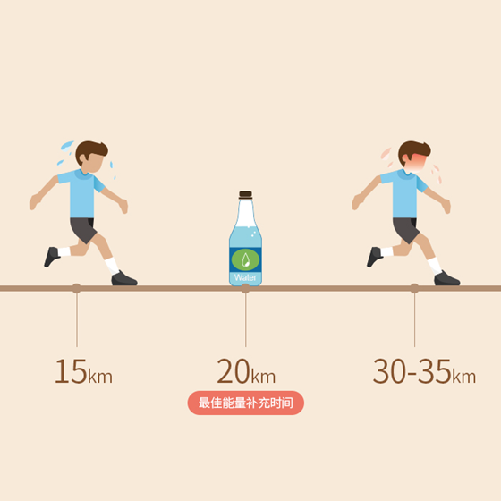 ????所以,跑馬最重要的就是恢復體能。最佳的能量補充時間在20公里后。補什么,當然先補水,皮膚水當當,紅潤有光澤。跑前一小時應補充500毫升水分,跑步過程中每隔20-30分鐘定時補充水分。不然就會出現脫水現象,肌肉痙攣、頭暈、肌肉疲乏。