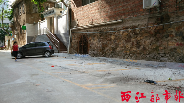 ????8月21日,記者在現(xiàn)場(chǎng)看到,在靠近計(jì)生服務(wù)站一側(cè)的寬約4米、長(zhǎng)約40米的區(qū)域,已用黃色油漆劃出了一個(gè)停車區(qū)域,部分區(qū)域還寫有相應(yīng)的車牌號(hào)。