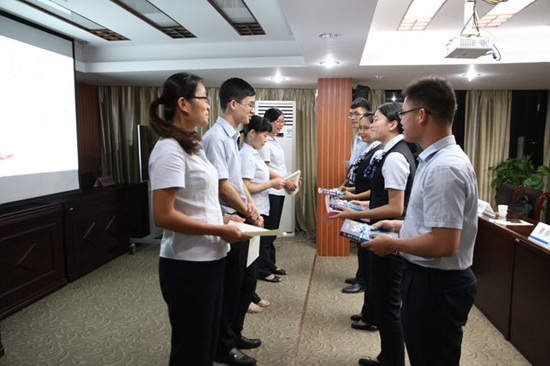 最后,梧州分行副行長任仕江代表分行黨委對新員工拜師儀式表達關心與祝賀,并對青年員工今后的職業發展提出四點要求:一是要起好步。指出新入行員工要明確目標導向,踏實工作,一步一個腳印,短期內加快業務技能學習,完成轉正考試,通過起好步為今后長遠目標規劃的實現打下堅實基礎。二是要重積累。青年員工在成長中要注重學習,通過不斷的學習與實踐積累經驗,努力提高自身業務基礎與專業水平。三是要當先進。青年員工要奮勇爭先,力爭上游,積極營造崇尚先進、爭當標桿的良好氛圍。四是要快成才。鼓勵青年員工要抓住機遇,利用建設銀行的大舞臺積極展示自我,成才成長,盡快挑起分行改革發展的重擔。最后,任仕江副行長代表分行黨委衷心希望各青年們盡快成長,并能將青年積極向上、朝氣蓬勃的精神一代一代永續傳承。