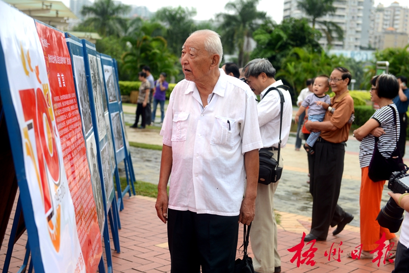 9月1日,市民在市政廣場觀看圖片展。當日,由市文聯主辦,市攝影家協會承辦的“偉大的勝利——梧州市紀念中國人民抗日戰爭70周年”圖片展在市政廣場舉行。展覽精選80余件圖片,通過新舊對比,反映70多年來梧州的歷史變遷和發展。李煜榮 攝