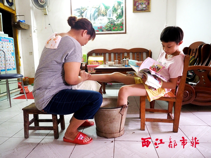 ??? 面對這令人難以接受的現(xiàn)實,慧恩父母并沒有放棄,而是給予女兒更多的關(guān)愛和呵護,并全身心投入小慧恩的康復(fù)治療中。多年來,慧恩媽媽專職在家每天為小慧恩用藥水洗腳、按摩和做康復(fù)鍛煉。