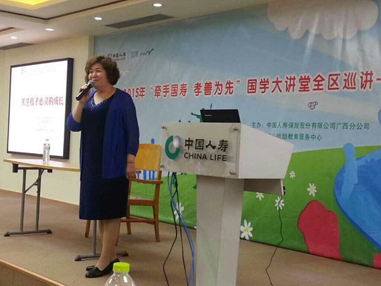 ?? 為了讓更多的客戶享受我公司的增值服務,讓中國人壽關愛少兒心理健康的服務理念更加深入人心,同時為銷售搭建與客戶溝通的平臺,中國人壽梧州分公司于2015年8月22日下午在梧州分公司九樓會議室隆重舉辦“牽手國壽 孝善為先”知心姐姐巡回大講堂活動。本次活動是全區知心大講堂巡回演講的第三站,受到了梧州分公司的銷售伙伴和客戶們殷切期待,當天下午有103位客戶和61位業務經理共 164人參加了此次講座。梧州分公司莫琳副總經理出席講座作領導致辭,并全程參加了講座。講座現場,由全國著名的知心姐姐心理健康教育巡回報告團—楚艷玲女士,為客戶們深入淺出地講解“關注孩子心靈的成長”、“關注孩子的生存智慧”、“關注孩子主動生活的能力”等多個家庭教育主題課程。老師講課風趣幽默,寓教于樂,并與在場的客戶互動密切,全場不斷傳來熱情洋溢的掌聲,同時講座中設置有獎互動、將活動的氣氛推向了高潮。此次活動進一步讓客戶加深對中國人壽的服務感知,提高國壽客戶對公司的忠誠度和滿意度。