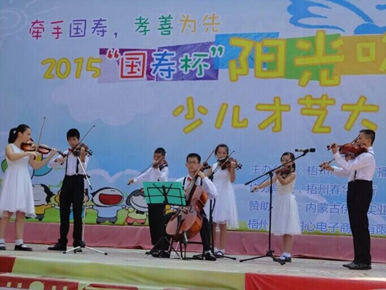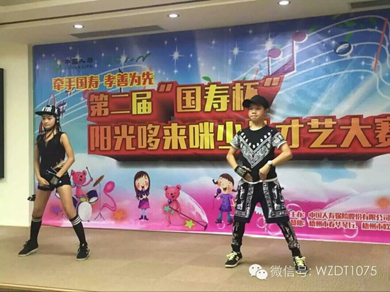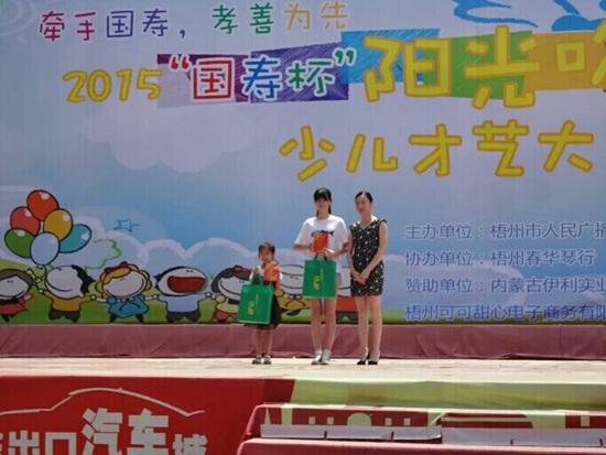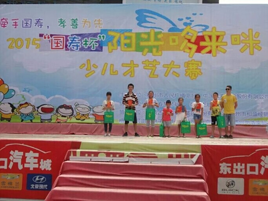 由中國人壽梧州分公司與梧州人民廣播電臺(tái)聯(lián)合舉辦的2015“牽手國壽 孝善為先” 第二屆陽光哆來咪少兒綜合才藝比賽于8月18日—8月20日分別舉行樂器組、歌舞組比賽。8月22日在梧州市鴛江麗港表演舞臺(tái)舉行樂器組、歌舞組以及市級書畫類一、二、三等獎(jiǎng)?lì)C獎(jiǎng)典禮。