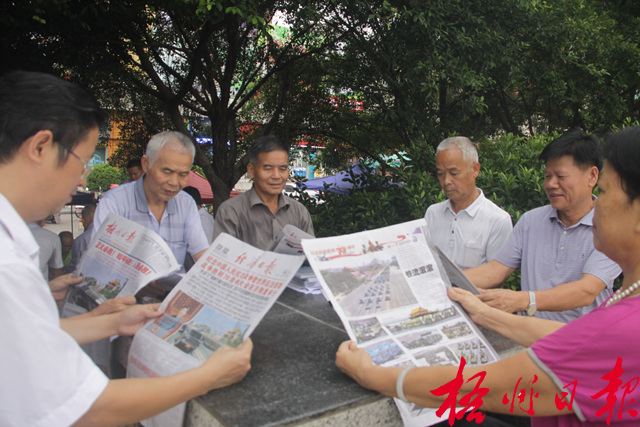 ????9月4日,藤縣的群眾在閱讀報紙,了解在北京舉行的中國人民抗日戰爭和世界反法西斯戰爭勝利70周年紀念活動的相關報道。