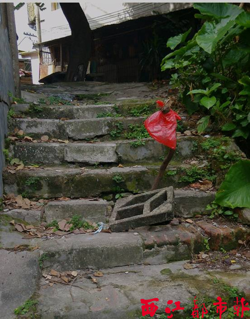 ????曾參與簡易修復工程的居民朱女士表示,當時居民連續往懸空處扔了20多袋沙石才填平坑洞,最后還在表層用水泥進行了簡易的加固。為了防止排污渠被堵塞(石階梯下面是排污渠),大家還自發在石階梯一側設置一條明渠以便污水能及時下排。