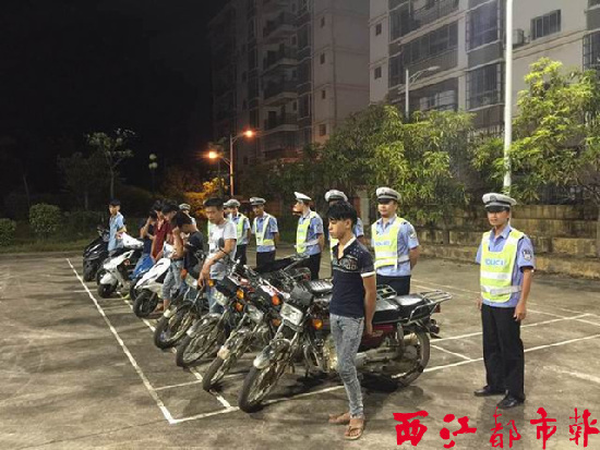 ????西江都市報訊(記者 楊珊 通訊員 廖媛)梧州市交警部門再出重拳整治“飆車黨”。9月6日深夜至7日凌晨,龍圩交警大隊聯合龍圩公安分局刑偵部門,對轄區內的“飆車黨”展開嚴厲打擊,一舉查獲38名飆車嫌疑人。目前,警方依法對其中9人處以行政拘留。