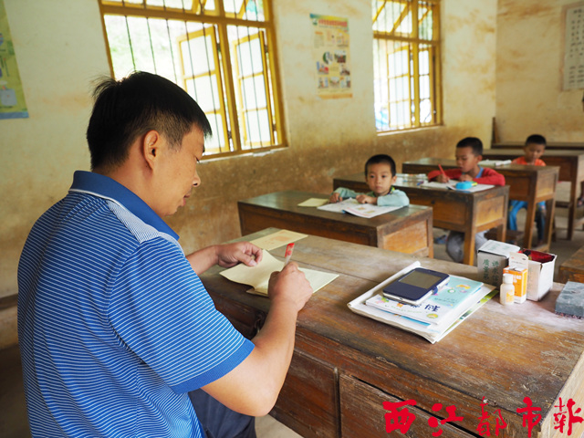 ????因?yàn)閷W(xué)生年紀(jì)小,很多行為習(xí)慣不規(guī)范,馮柱強(qiáng)一邊上課,一邊要不時糾正學(xué)生亂動、坐姿不正確等壞習(xí)慣。在教師講臺的抽屜里,馮柱強(qiáng)還時刻備著云香精、風(fēng)油精等藥物,只為隨時照顧磕磕碰碰或生病的學(xué)生。