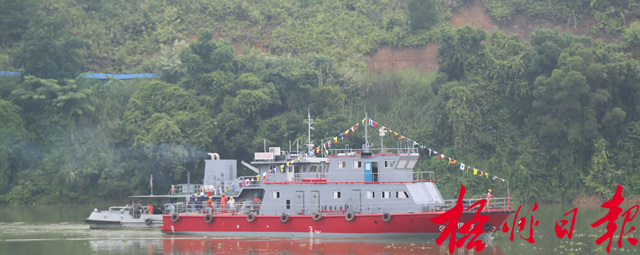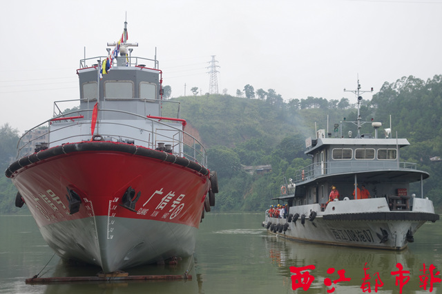 ??? 9月10日,由中船桂江造船公司制造的梧州新消防船“廣信”號下水試航。 據悉,該消防船總長32.95米、型寬7米,吃水深度1.5米,排水量200噸,船上配備消防水炮、獨立驅動水炮,可為岸上不間斷長距離供水,實現邊行駛邊滅火。“廣信”號投入使用后,將接替已服役84年的“衛閭”號,成為西江黃金水道上新的“守護神”。黃東榮 雷開偉 攝 |