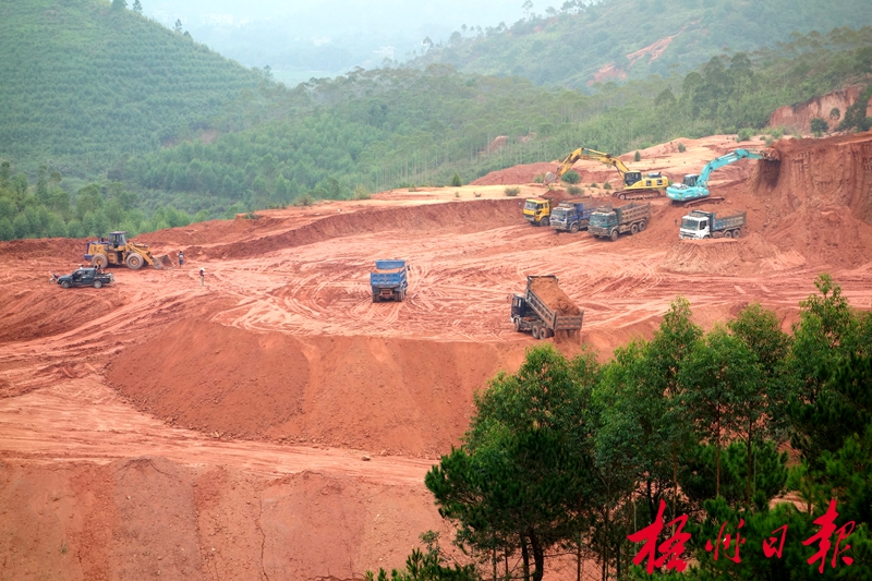 ????9月10日,在粵桂合作特別試驗區(qū)社學(xué)片區(qū),施工機械正開展道路工程清表和土方挖運。