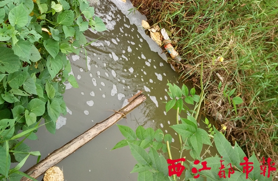????據(jù)莫先生反映,這種情況已經(jīng)持續(xù)了大概一年,由于沒有別的水源,菜農(nóng)們雖然知道水質(zhì)很可能已經(jīng)被污染,種植出來的蔬菜也有可能不安全,但為了維持生計(jì),菜農(nóng)們只能繼續(xù)用這些水澆灌蔬菜?!坝晏祜h散出來的氣味可能沒那么臭,如果是晴天臭味更嚴(yán)重。我們曾向村委會(huì)和梧州市環(huán)保局反映過這個(gè)情況,他們也派人來看過,處理后的結(jié)果我們并不清楚,現(xiàn)在這個(gè)問題始終沒有得到解決?!蹦壬f。