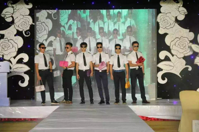 ????當晚,六名男模特身穿飛行員服裝,手持愛心商品進行T臺走秀。