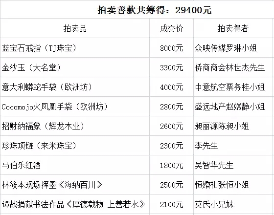 ????晚會以一曲肚皮舞拉開序幕,成功調動起觀眾的熱情,愛心拍賣一開始,現場觀眾就踴躍出價,最終由僑商商會成員林世杰老先生以3300元投得第一件拍賣品金沙玉雙龍戲珠。隨后,市僑商商會現場捐贈6000元現金,再添一份愛心。