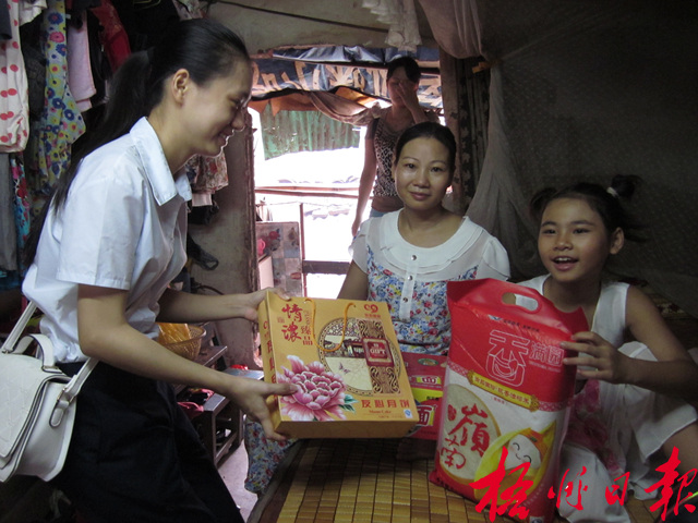 愛心代表到小梅家中探望,并送上中秋慰問品。 梧州日報記者 羅麗思 攝