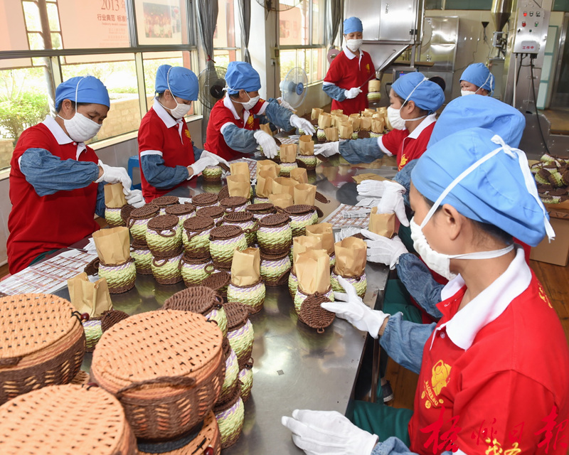 9月26日,在梧州茂圣茶業(yè)有限公司生產(chǎn)車間,工人正包裝茶葉。