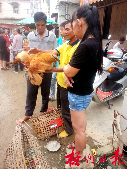 9月27日,在岑溪市馬路鎮曇容社區農貿市場,人們在選購家禽,為中秋家宴準備食材。 羅銀妮 攝