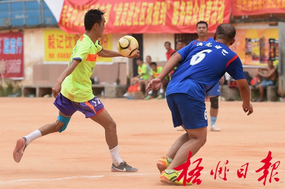 9月27日,在大較場足球場,球員們在比賽中拼搶。 中秋節期間,休假回梧過節的足球愛好者參加周未舉行的“動向杯”中、青年組足球賽,與本地球友切磋技藝,享受足球帶來的快樂。 孟亞西 攝