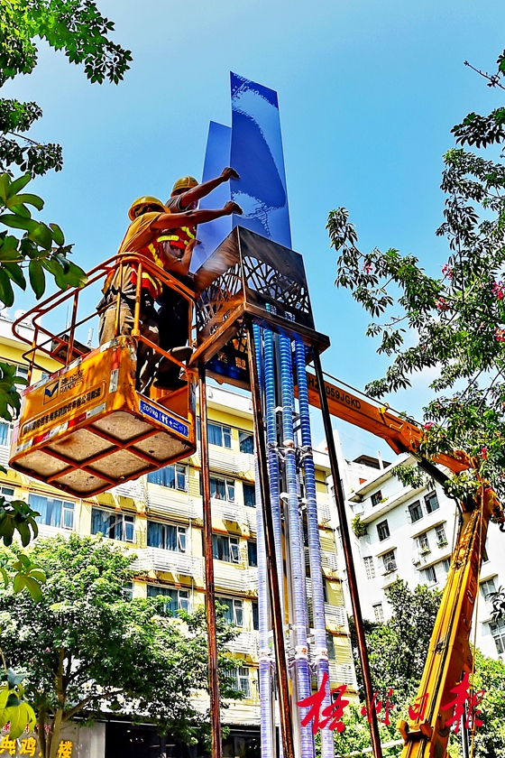 9月28日,工人正檢修路燈。 連日來,市政園林部門安排路燈管理組對(duì)市區(qū)街巷照明設(shè)施進(jìn)行全面檢修,更換損壞燈泡燈飾,并清除燈罩內(nèi)外雜物,確保路燈運(yùn)行安全,營造良好的照明條件迎接國慶節(jié)。 孟亞西 攝