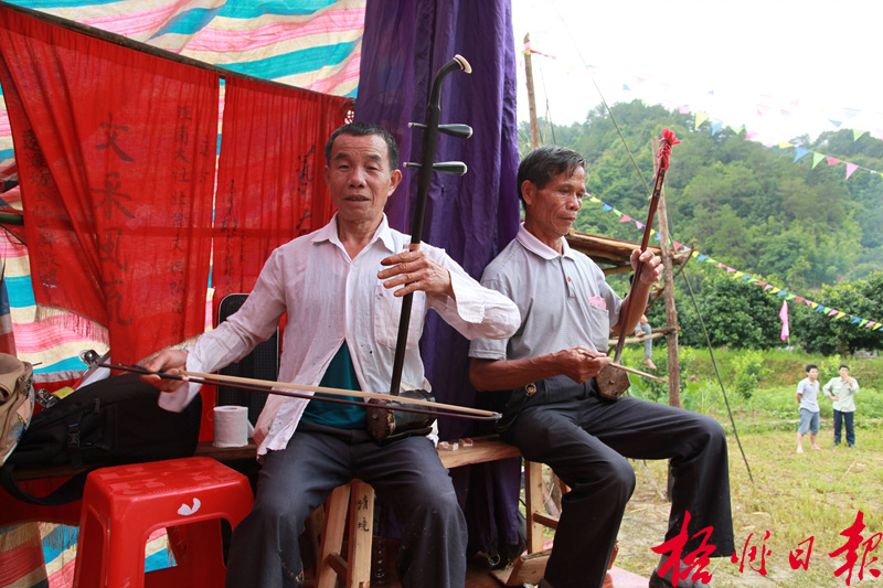 李紹初為老義村大社自然村廟會拉二胡助興。黎杰源 攝