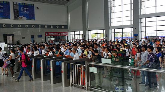 和公路客運(yùn)相比,鐵路出行更顯火暴。昨日上午9時(shí),記者在梧州南站看到,售票大廳早已人滿為患,排隊(duì)購(gòu)票、打印車票的隊(duì)伍已經(jīng)排到了廣場(chǎng)外,而在候車大廳里,大包小包的旅客手上拿著車票,依次接受安檢進(jìn)入大廳候車,整個(gè)車站熙熙攘攘,十分熱鬧。