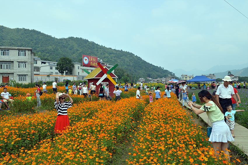 10月1日,在蒙山縣“四季花?!保稳苏谟瓮?、拍照。