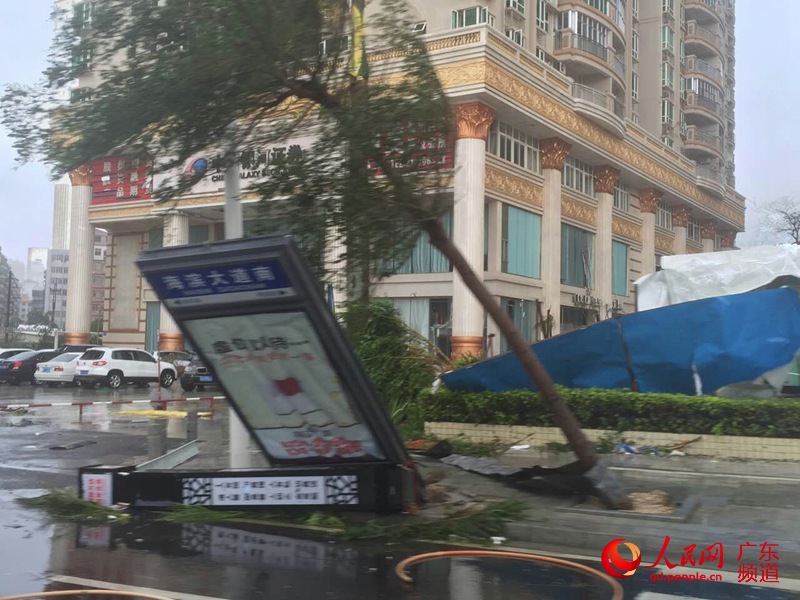 10月4日下午2時10分,臺風“彩虹”登陸肆虐廣東湛江,正處于臺風眼里的湛江市區到處一片狼藉。馬俊 攝