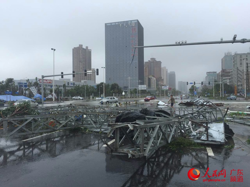 10月4日下午2時(shí)10分,臺(tái)風(fēng)“彩虹”登陸肆虐廣東湛江,正處于臺(tái)風(fēng)眼里的湛江市區(qū)到處一片狼藉。馬俊 攝