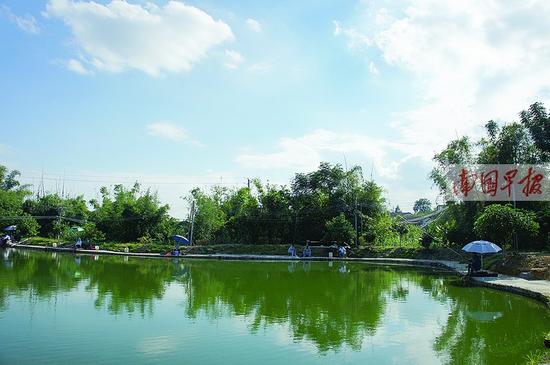 ????南寧市興寧區一家農家樂里,游客在垂釣。
