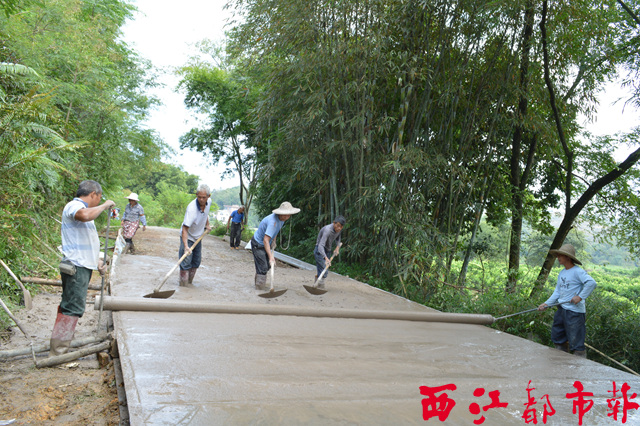 ????10月11日 ,工人們在蒙山縣文圩鎮河村六車路段鋪設水泥路。