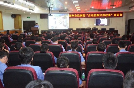 ????10月13日上午8點半,梧州市“身邊檢察官的故事”宣講會在梧州市人民檢察院召開,來自基層檢察院的9個宣講人分別講述了1個自己身邊的檢察官的故事,這些故事里的主人公也依次在會上簡述了自己的工作體會。這9個檢察官的故事里沒有過多的驚天動地,只有波瀾不驚,默默無聞,兢兢業業,十年如一日地認真做事。